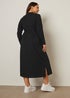Make space in your wardrobe for this must-have midi dress. Made from a comfortable jersey fabric, it features an a-line style, ribbed texture, long sleeves, a midi length, classic collar, v-neckline, and a tie waist belt. Pair with trainers for an effortless off-duty look you will love. Model is 5'7"/173 cm and size UK 16 / EU 44.