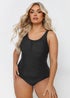 Yours Curve Black Ruched Mesh Tummy Control Swimsuit