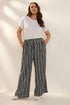 These new-in trousers are a summer staple Made from a textured woven fabric, they feature a stripe print design, a wide leg style, an elasticated waistband with an adjustable tie drawstring, and two side pockets. Style with a t-shirt and sandals for a casual everyday look Model is 5'10.5"/178cm and size UK 16/EU 44.