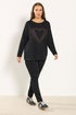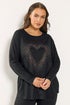 Yours Curve Black Studded Heart Long Sleeve T-Shirt