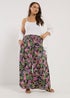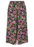Yours Curve Black Tropical Print Shirred Wide Leg Trousers