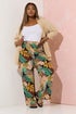 Yours Curve Black Tropical Print Wide Leg Trousers