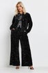 The perfect jacket for the party season ahead! Made from a soft velvet fabric, it features sequin embellishments, tie front details, long sleeves, and a collarless look. Simply style with trousers and heels for a glamourous night out look! Model is 5' 9.5" / 176.53 cm and size UK 16/EU 44.