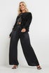 Yours Curve Black Velvet Bow Tie Front Sequin Jacket