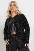 • Yours Curve Black Velvet Bow Tie Front Sequin Jacket