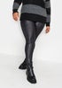 Perfect for dressing up your outfit and staying comfortable, these leggings are an essential piece to your wardrobe. They feature an elasticated waistband for all day comfort and a leather look finish. Partner with a casual tee and trainers or dress them up with a party top and heels. Model is 5' 8.5"/ 174cm and size UK 18/EU 46.