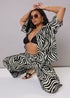 Get holiday ready with these must-have zebra print trousers Made from a breathable woven fabric, they feature crochet trims, a wide leg style, and elasticated waistband with an adjustable tie drawstring, and two side pockets. Style with the matching shirt for a beach ready style you'll love to wear. Model is 5'7"/173 cm and size UK 16 / EU 44.