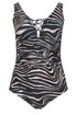 Yours Curve Black Zebra Print Plunge Swimsuit
