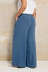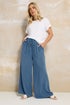 Yours Curve Blue Chambray Tie Front Wide Leg Trousers