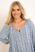 YOURS Curve Blue Ditsy Floral Print Tie Neck Top