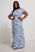 • Yours Curve Blue Floral Tie Neck Tiered Maxi Dress