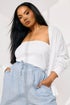 Yours Curve Blue Stripe Tie Front Linen Shorts