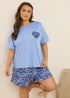 Yours Curve Blue Wild Night In Animal Print Short Pyjama Set