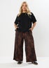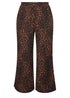 Yours Curve Brown Leopard Print Crinkle Wide Leg Trousers