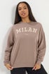 Make a statement this season with this must-have sweatshirt. Made from a comfortable jersey fabric, it features a 'Milan' slogan with long sleeves and a crew neckline. Team with wide leg jeans and trainers for a casual weekend look that you'll keep reaching for. Model is 5'7"/173 cm and size UK 16 / EU 44.