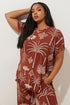 Tap into a new print this season with this must-have top Made from a jersey plisse fabric, it features a palm print design, short grown on sleeves, and a scoop neckline. Partner with jeans and trainers for an easy casual look you'll be reaching for on repeat Model is 5'7"/173 cm and size UK 16 / EU 44.