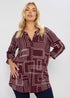 Yours Curve Burgundy Red Abstract Half Placket Shirt
