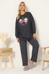 Yours Curve Charcoal Grey 'Hot Choc O'clock' Wide Leg Pyjama Set