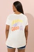 Yours Curve Cream Focus On The Good Graphic Back Print T-Shirt
