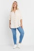 YOURS Curve Cream Short Sleeve Linen Stripe Shirt