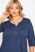 Yours Curve Denim Blue Pintuck Henley T-Shirt