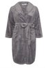 Stay warm and cosy this season with our new-in dressing gown! Made from a soft touch fleece fabric, it features a shawl collar, long sleeves, a belted tie waist design, and two side pockets. Team with your favourite pyjama and slipper combo for the ultimate night-in look!