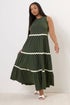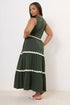 Yours Curve Khaki Green Contrast Swirl Tiered Maxi Dress