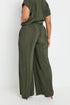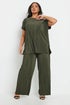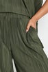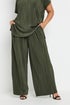 Yours Curve Khaki Green Plisse Wide Leg Trousers