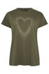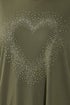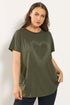 Yours Curve Khaki Green Studded Heart T-Shirt