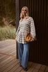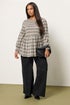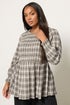 Yours Curve Natural Brown Check Shirred Peplum Top
