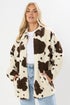 Yours Curve Natural Brown Cow Print Teddy Borg Jacket
