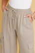 Prepare for summer in style with these must-have linen cargo trousers. Made from a soft linen fabric, they feature four pockets, a wide leg style, an elasticated waistband, and an adjustable tie drawstring. Style with a t-shirt and sandals for a casual everyday look you will love to wear. Model is 5' 9.5" / 176.53 cm and size UK 16/EU 44.