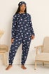 Yours Curve Navy Blue Bow Soft Touch Pyjama & Eye Mask Set