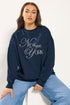 Yours Curve Navy Blue Embroidered 'New York' Slogan Sweatshirt