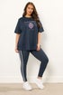 Yours Curve Navy Blue 'Health & Wellness' Slogan T-Shirt
