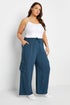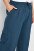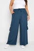 Yours Curve Navy Blue Linen Look Cargo Trousers