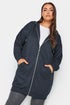 • Yours Curve Navy Blue Longline Zip Hoodie