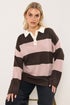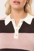 Yours Curve Pink Striped Rugby Collar Jumper
