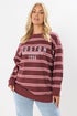 • Yours Curve Red 'Boston' Slogan Stripe Sweatshirt