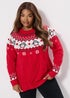 Yours Curve Red Novelty Penguin Fairisle Christmas Jumper