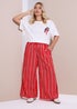 Yours Curve Red Textured Stripe Wide Leg Trousers
