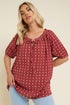 Yours Curve Rust Orange Dobby Tie Neck Top