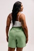 • Yours Curve Sage Green Crinkle Tie Waist Shorts