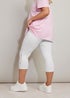 Upgrade your casual collection with these plus size leggings. Made from a comfortable jersey fabric, they feature lace detail with an elasticated waistband and finish in a cropped length. Team with a t-shirt and trainers for a look that is perfect for ease and comfort. Model is 5' 9.5" / 176.53 cm and size UK 16/EU 44.