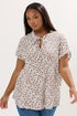 Upgrade your everyday wardrobe with this must-have top! Made from a breathable woven fabric, it features a leaf print, a textured design, a frilled notch neckline with a tie detail, and short sleeves. Style with jeans and trainers for an easy day-to-day look you will be reaching for on repeat this season! Model is 5'7"/173 cm and size UK 16 / EU 44.