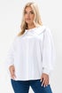 Welcome a new style into your everyday wardrobe with this new-in poplin shirt! Made from a soft cotton fabric, it features a statement collar, long sleeves, button fastenings, a round neckline, and tie sleeve details. Style with jeans for a casual look, or team with trousers and loafers for a flattering office style! Model is 5' 9.5" / 176.53 cm and size UK 16/EU 44.