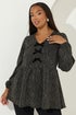 Enter the party season in style with this new-in peplum top from Yours Curve! Made from a comfortable jersey fabric, it features a metallic finish, velvet bow front details, a v-neckline, and long sleeves. Team with skinny jeans and heels for your next night out with the girls! Model is 5'7"/173 cm and size UK 16 / EU 44.