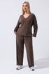 Yours Limited Curve Brown Ribbed V-Neck Top