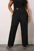 Yours London Curve Black Premium High Waisted Belted Wide Leg Trousers