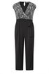Yours London Curve Black & Silver Wrap Front Sequin Jumpsuit